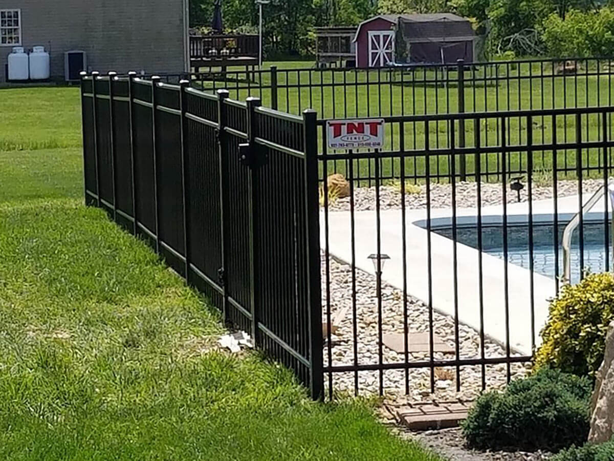 Secure your pool in Cincinnati Ohio with a premium aluminum pool fence. Built with safety in mind, aluminum fencing gives a clear view into the pool from every angle, giving you peace of mind with children and pets on the property. Thanks to their rust-free material, these fences are great for withstanding the rain and offer long-lasting security.